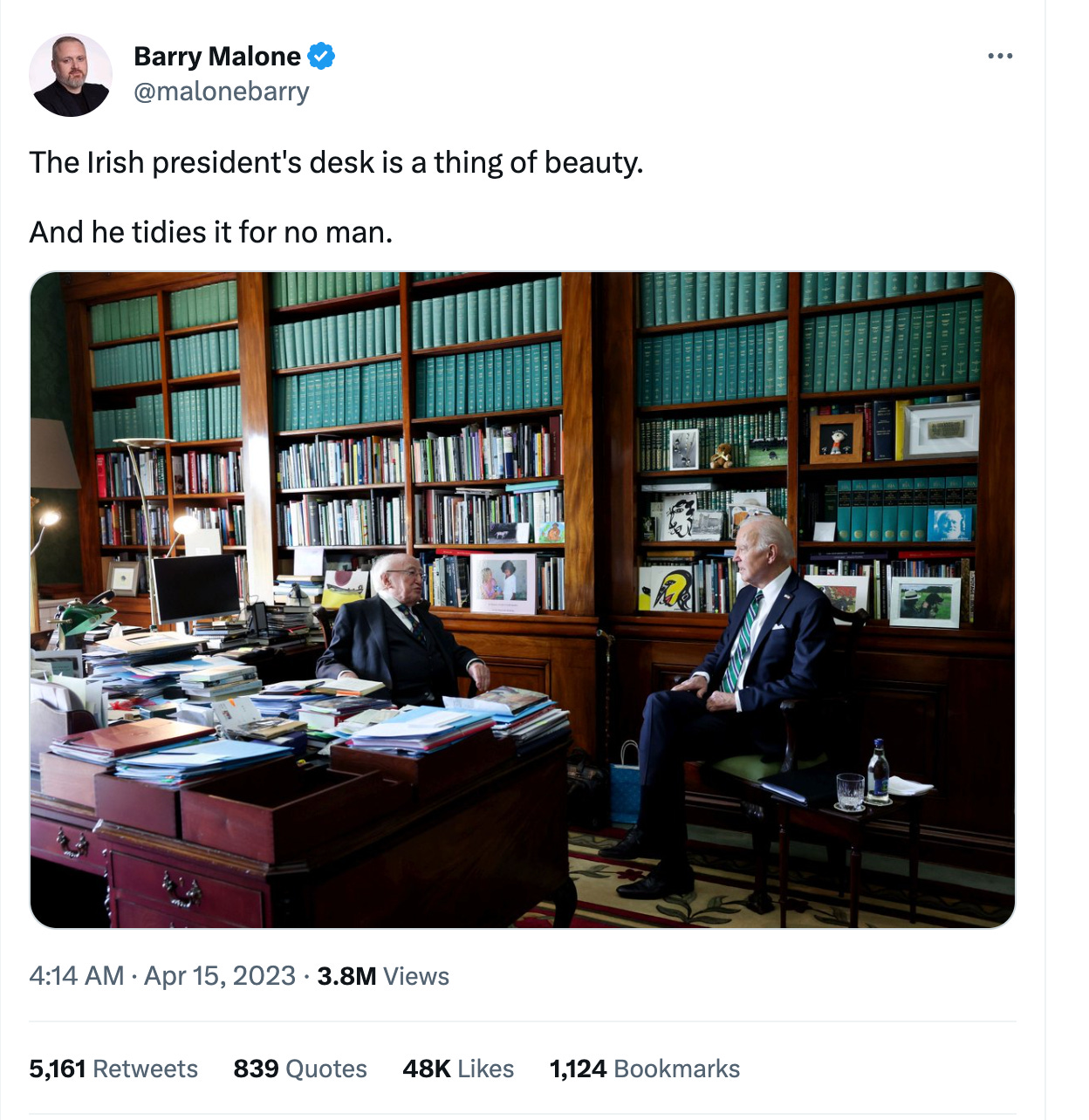 Do you know Barry Malone? He’s a respected journalist who also happens to be Irish and so is funny as all hell. This tweet up here had me in stitches. If you haven’t boycotted twitter yet, I recommend you follow Barry. But more importantly than that, Barry writes a daily Substack highlighting three non-western stories you should know about but isn’t covered much by mainstream. You can subscribe to it, or at the very least check it out down here.
