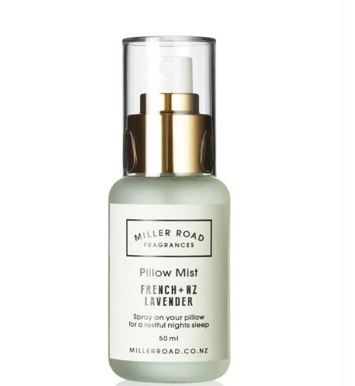 What’s helping though, is spraying my pillow with a lavender pillow spray I get from a business in Queenstown called Miller Road. This is it here and so long as you can tolerate the fragrance of lavender, this stuff will knock you right out. Again, I don’t know how or why, but it works for me, and also my son, beautifully.